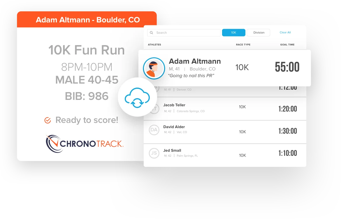 En esta era digital, los consumidores esperan una gratificación instantánea sin esperas ni tiempos de inactividad. Con ChronoTrack Live activando Athlinks Live Results, lo ayudamos a mantenerse competitivo en un mercado altamente comercializado, en cualquier dispositivo, en cualquier momento, en cualquier parte del mundo. Proporcione a los atletas fichas intemporales de sus logros que valga la pena compartir con amigos y familiares, tan pronto como crucen la línea de meta.